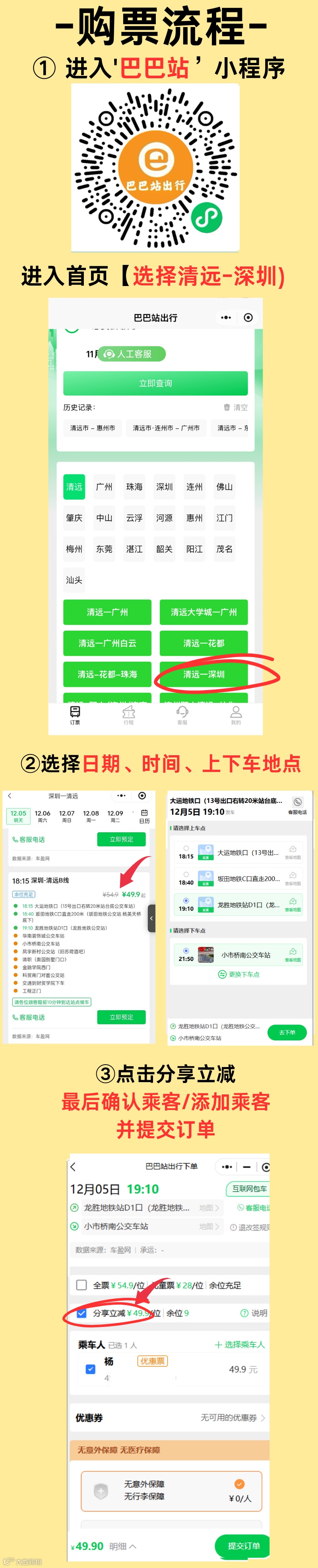 僅需49.9元!清遠(yuǎn)直達(dá)龍華/龍崗! 巴巴站出行