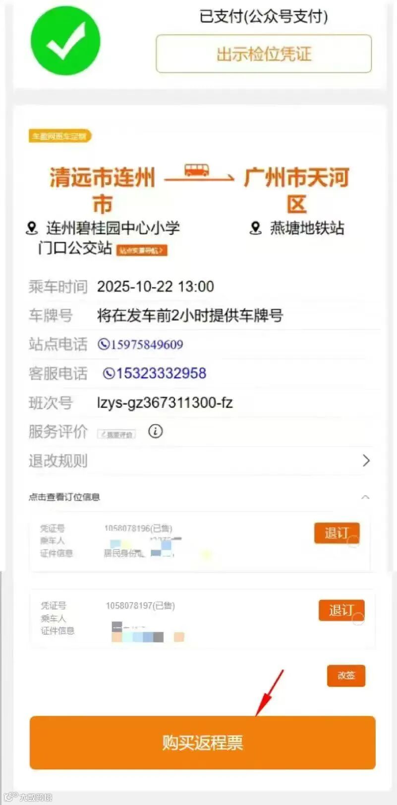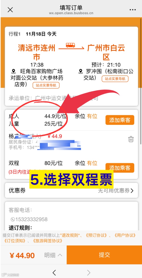 連州-廣州雙程購票流程!
