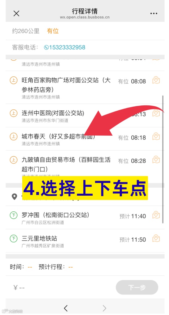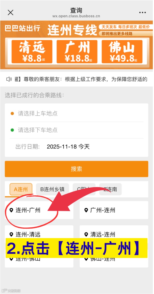 繼續(xù)選擇【連州-廣州】線路
