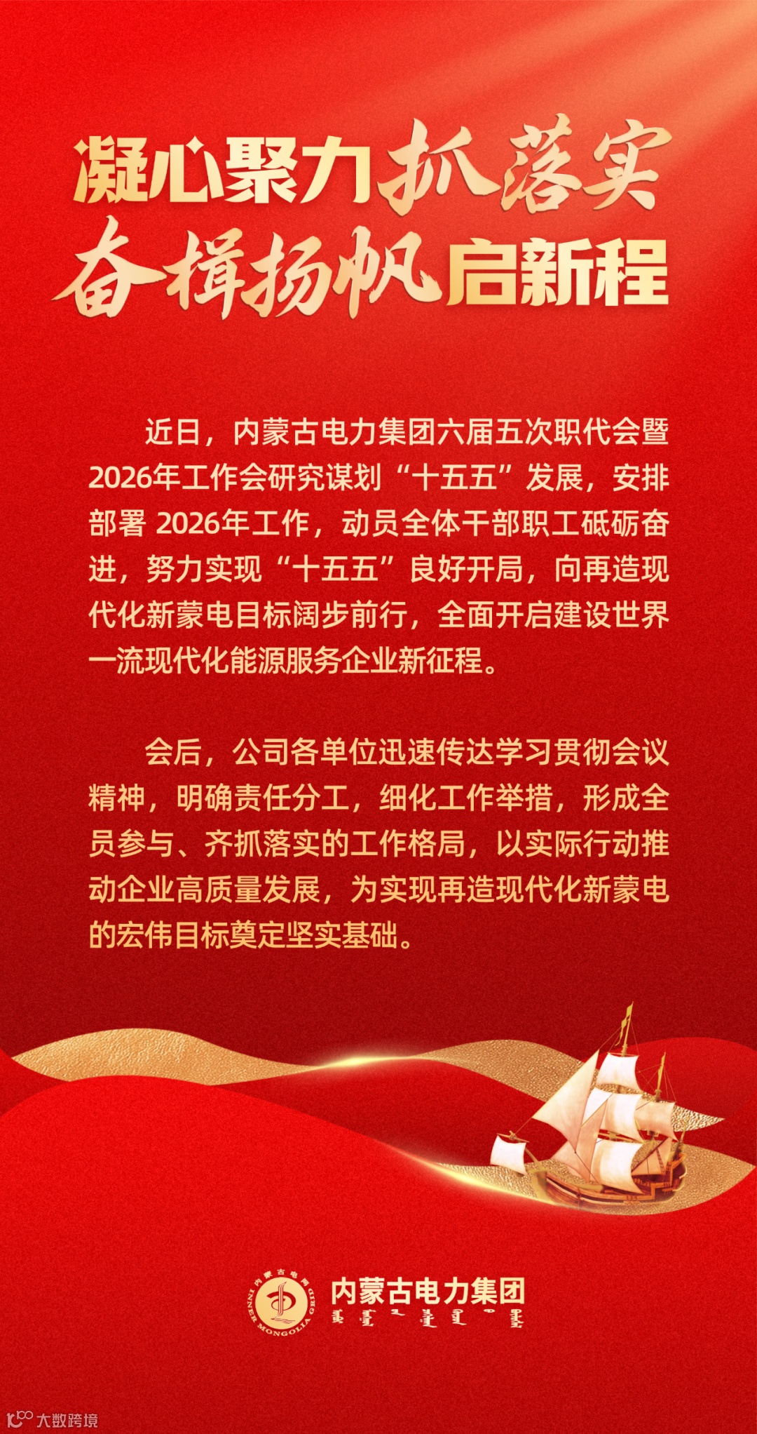 2026年,是“十五五”規(guī)劃的開局之年,呼和浩特供電公司將堅決貫徹落實集團公司“兩會”工作部署,以實干篤行回應使命擔當,抓好安全生產、電網(wǎng)建設、優(yōu)質服務、經營管理和黨的建設各項重點工作。