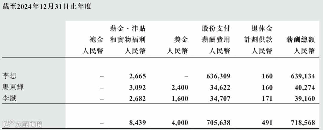 2024年,李想獲得約6.39億元股權(quán)激勵,與其266萬元基本薪酬形成巨大反差。而在2025年銷量下滑、虧損擴大的背景下,李想?yún)s逐步退出日常運營,將重擔交予薪酬遠低于自己的馬東輝。