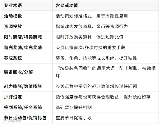 一、游戲內(nèi)運(yùn)營(yíng)相關(guān)術(shù)語