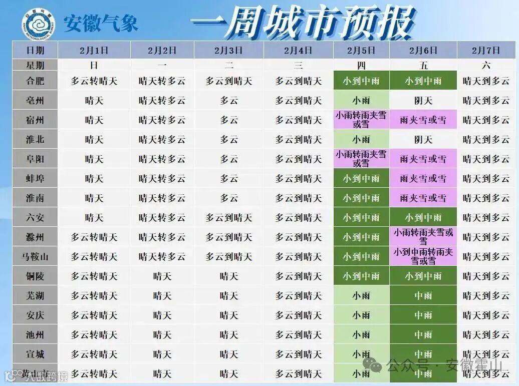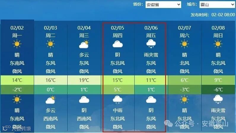 霍山或有雨夾雪