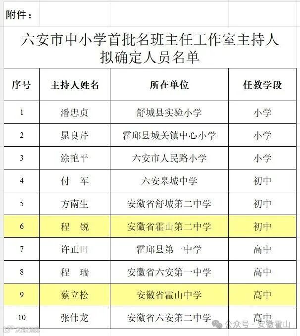 附件:六安市中小學首批名班主任工作室主持人擬確定人員名單