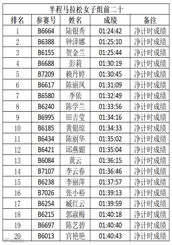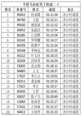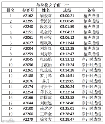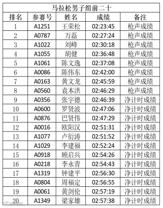 1.馬拉松前八名獎勵(lì)按照槍聲成績排名,其余獎勵(lì)名次按照凈計(jì)時(shí)排名。半程馬拉松名次按照凈計(jì)時(shí)排名。河源籍選手成績按照凈計(jì)時(shí)排名,如參賽選手存在違反賽規(guī)賽紀(jì)問題,則取消其名次及獎勵(lì),成績名次不遞補(bǔ)。