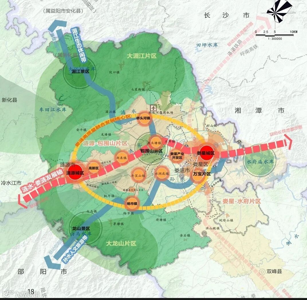 (一)近期實(shí)現(xiàn)“小擴(kuò)版圖”,將南部杏子鋪、洪山殿,西部楊市鎮(zhèn)、橋頭河納入婁星區(qū)版圖,遠(yuǎn)期“市改區(qū)”將漣源納入城區(qū)一體化管理。