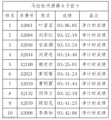 馬拉松項目河源籍女子組成績公示