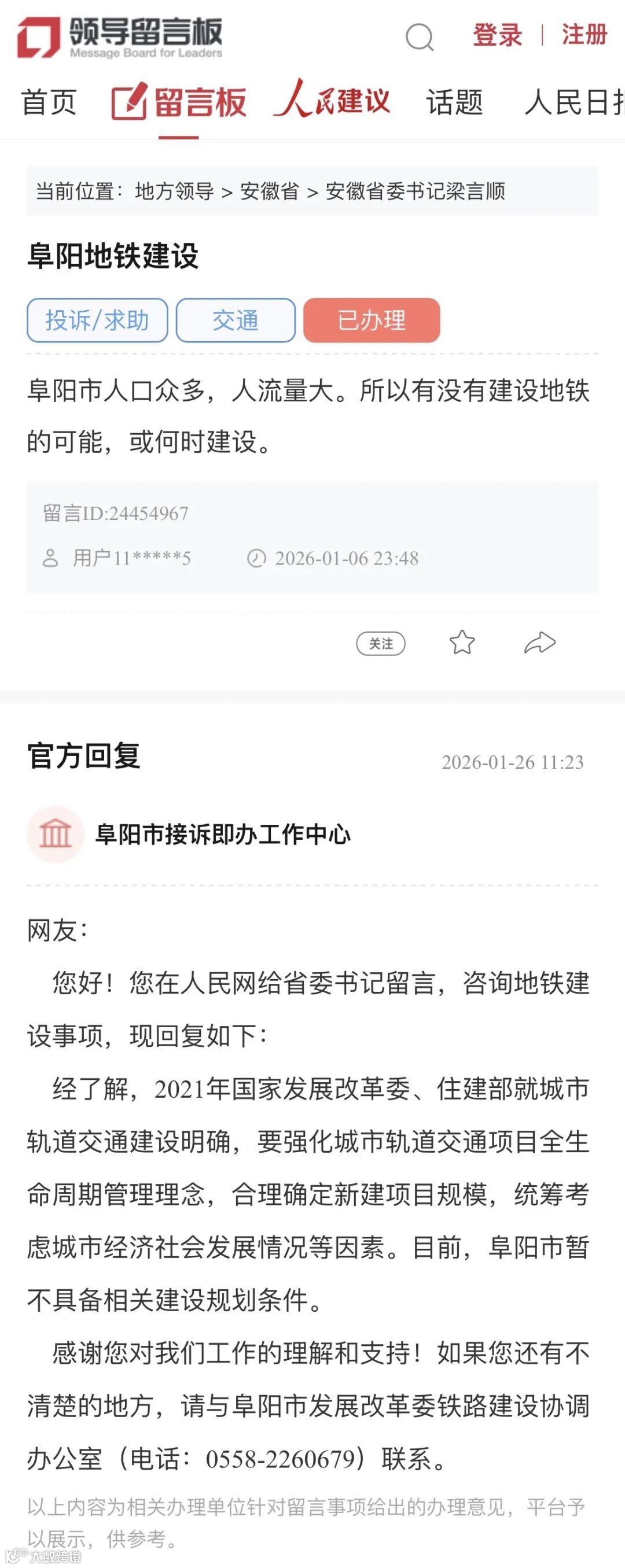 事關(guān)阜陽(yáng)地鐵建設(shè)!官方剛剛回復(fù)….
