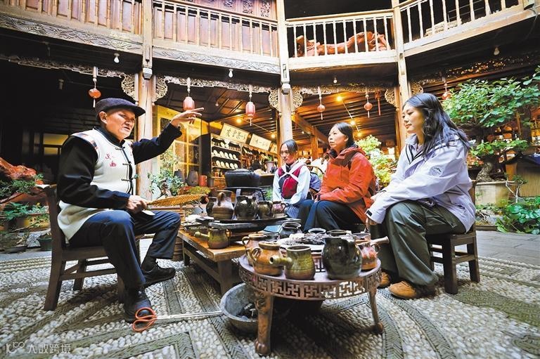 曾經(jīng)徒步走馬幫的谷榮桂,在麗江古城自家庭院里邊展示古法烤茶,邊向游客講述當年茶馬古道的艱辛與繁華;藝術(shù)家古原來到麗江,將傳統(tǒng)民族元素與現(xiàn)代藝術(shù)裝置相融合,向世界推介麗江傳統(tǒng)的魅力;曾經(jīng)在外闖蕩的和玉月回到雪山腳下的“石頭村”玉湖村,與父親辦起納西族“家訪”,讓外地游客深度體驗納西族火塘文化……麗江市堅持以文塑旅、以旅彰文,打造“舍不得的麗江”旅游IP,提升麗江文化旅游品牌影響力。