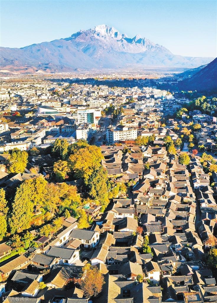 2025年12月5日,玉龍雪山下的麗江古城。麗江市推動麗江古城遺產(chǎn)保護和景區(qū)發(fā)展,加強非物質(zhì)文化遺產(chǎn)保護利用,打造了30余個特色文化院落。