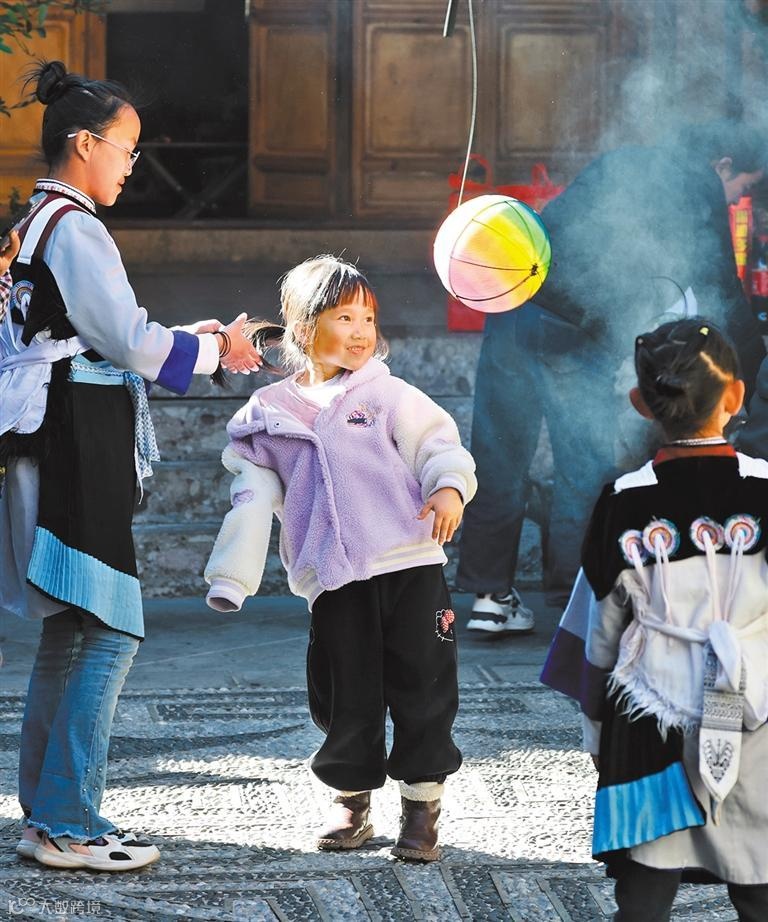2025年12月6日,小朋友在麗江市玉龍納西族自治縣白沙鎮(zhèn)玉湖村一客棧內(nèi)開心玩耍。