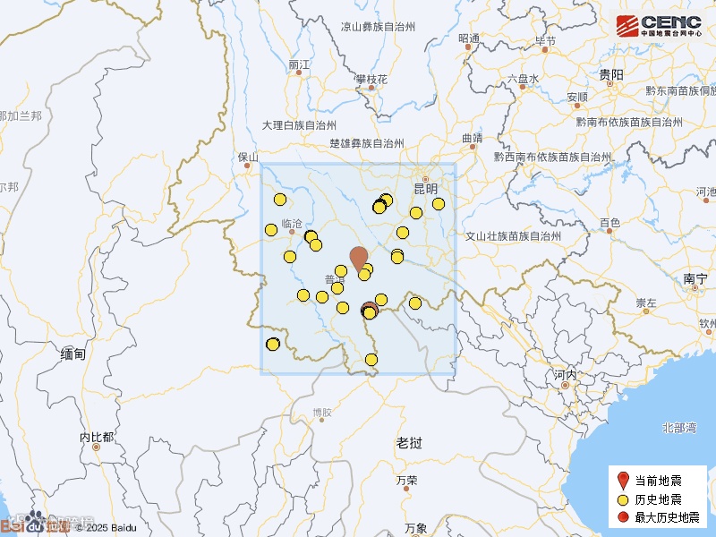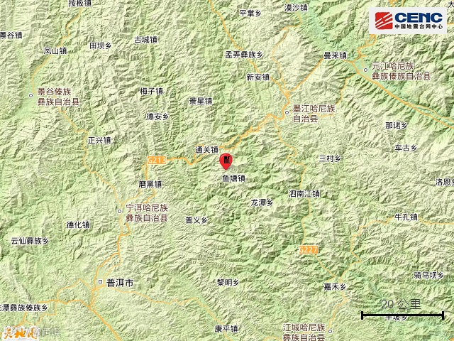 周邊縣城:震中距墨江哈尼族自治縣34公里、距寧洱哈尼族彝族自治縣46公里、距思茅區(qū)68公里、距元江哈尼族彝族傣族自治縣70公里、距江城哈尼族彝族自治縣81公里,距普洱市66公里,距昆明市241公里。
