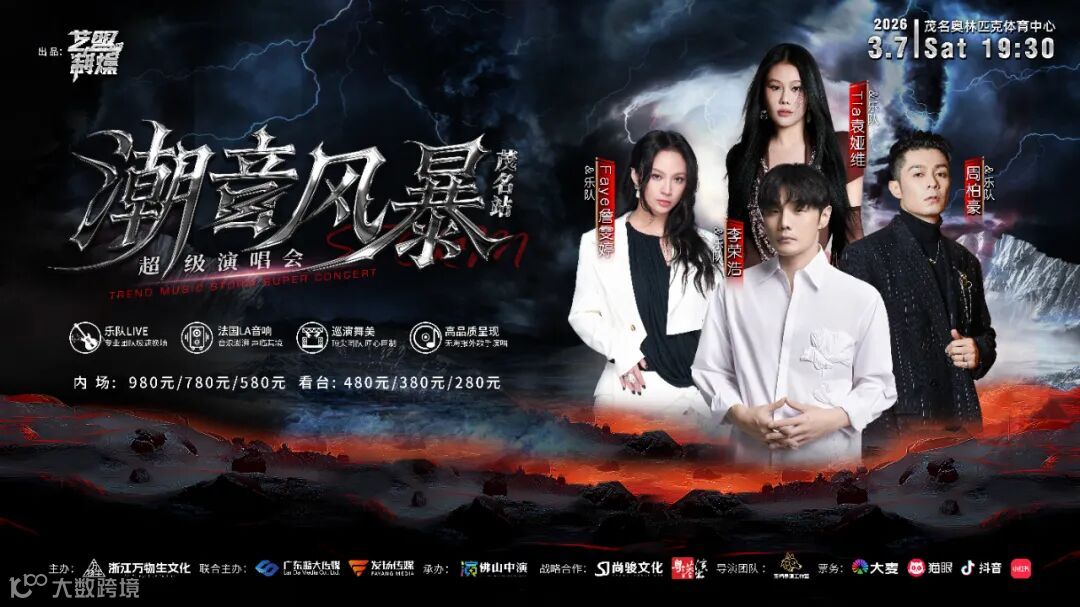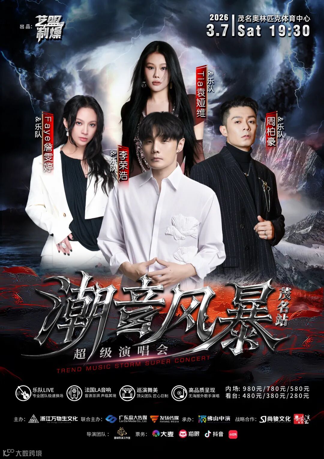 官宣!茂名奧體中心體育場首演——潮音風暴超級演唱會茂名站,陣容、票價公布