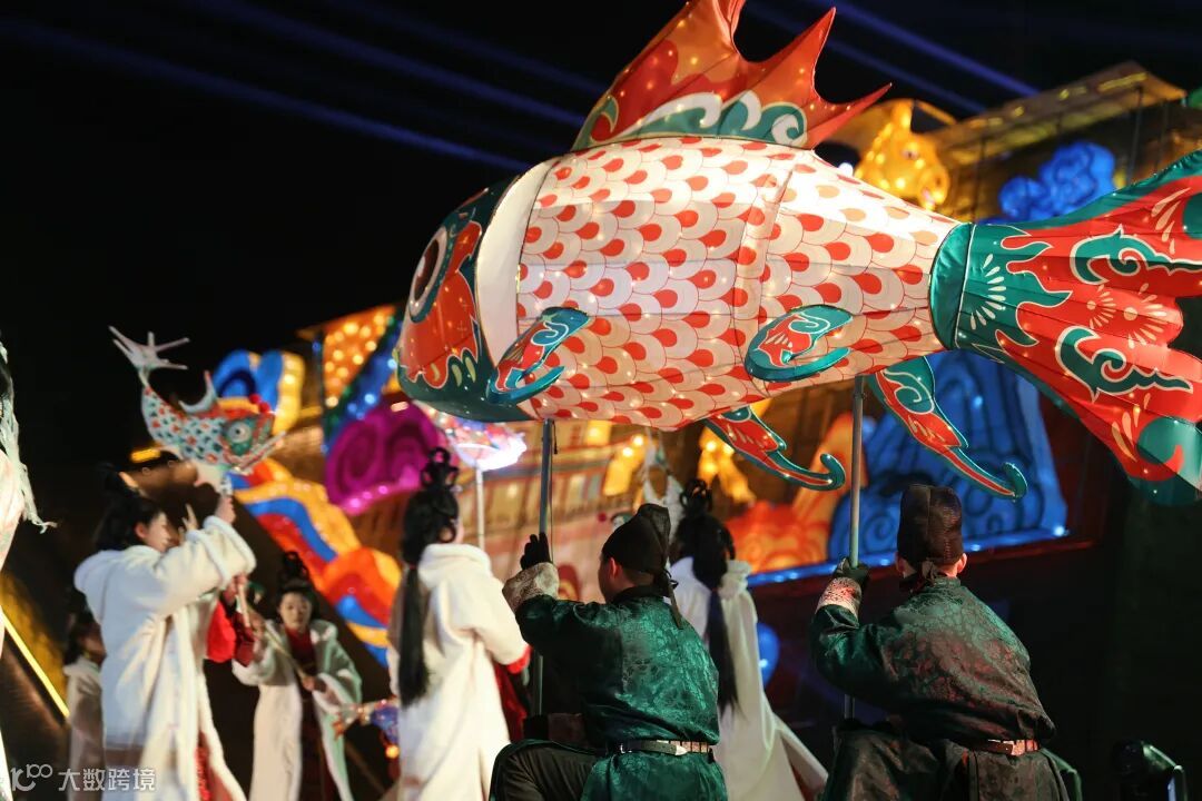 非遺不眠,百戲夜宴。噴火、儺戲、火壺、火魔方、木偶戲……民樂與魚燈共舞,在盛世國樂的旋律中,非遺與現(xiàn)代視覺交織,擦出令人心動(dòng)的火花。