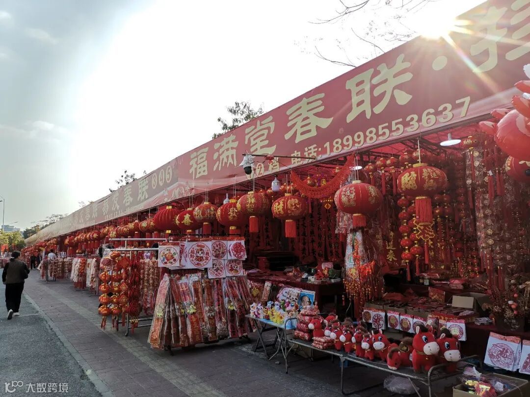 隨后,小編轉(zhuǎn)至江東北路的茂名春聯(lián)年貨花街。這條街除了集中銷售春聯(lián)、燈籠等傳統(tǒng)年貨之外,更與官渡花街相連,形成“年貨+花卉”一站式采購區(qū)。