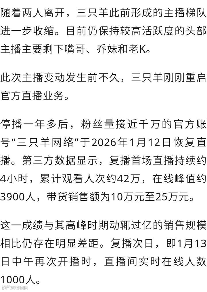 三只羊復(fù)播未滿(mǎn)月,兩名頭部主播宣布解約