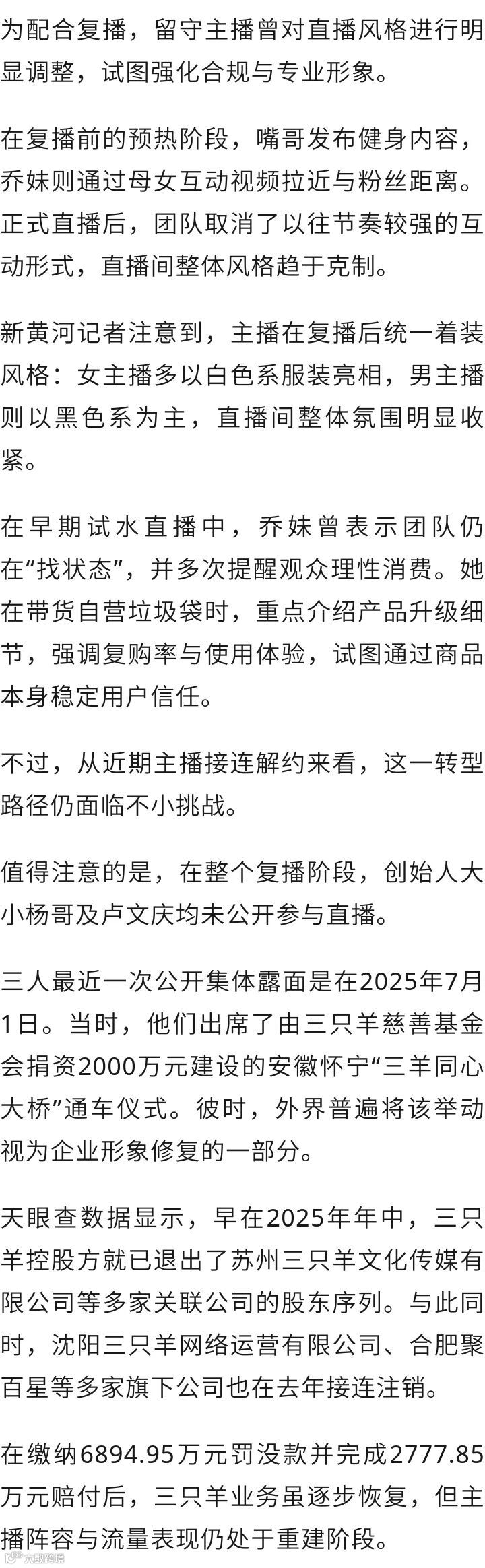三只羊復(fù)播未滿(mǎn)月,兩名頭部主播宣布解約 新法治報(bào)