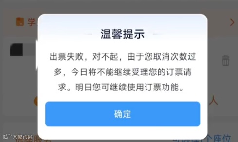 客服表示,在線上購票時單日取消3次,會對該12306賬戶有限制措施,當日購票權(quán)限即被鎖定。