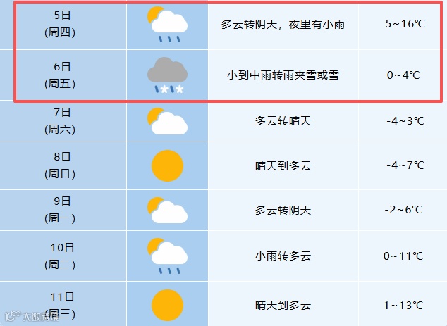 轉(zhuǎn)雨夾雪或雪