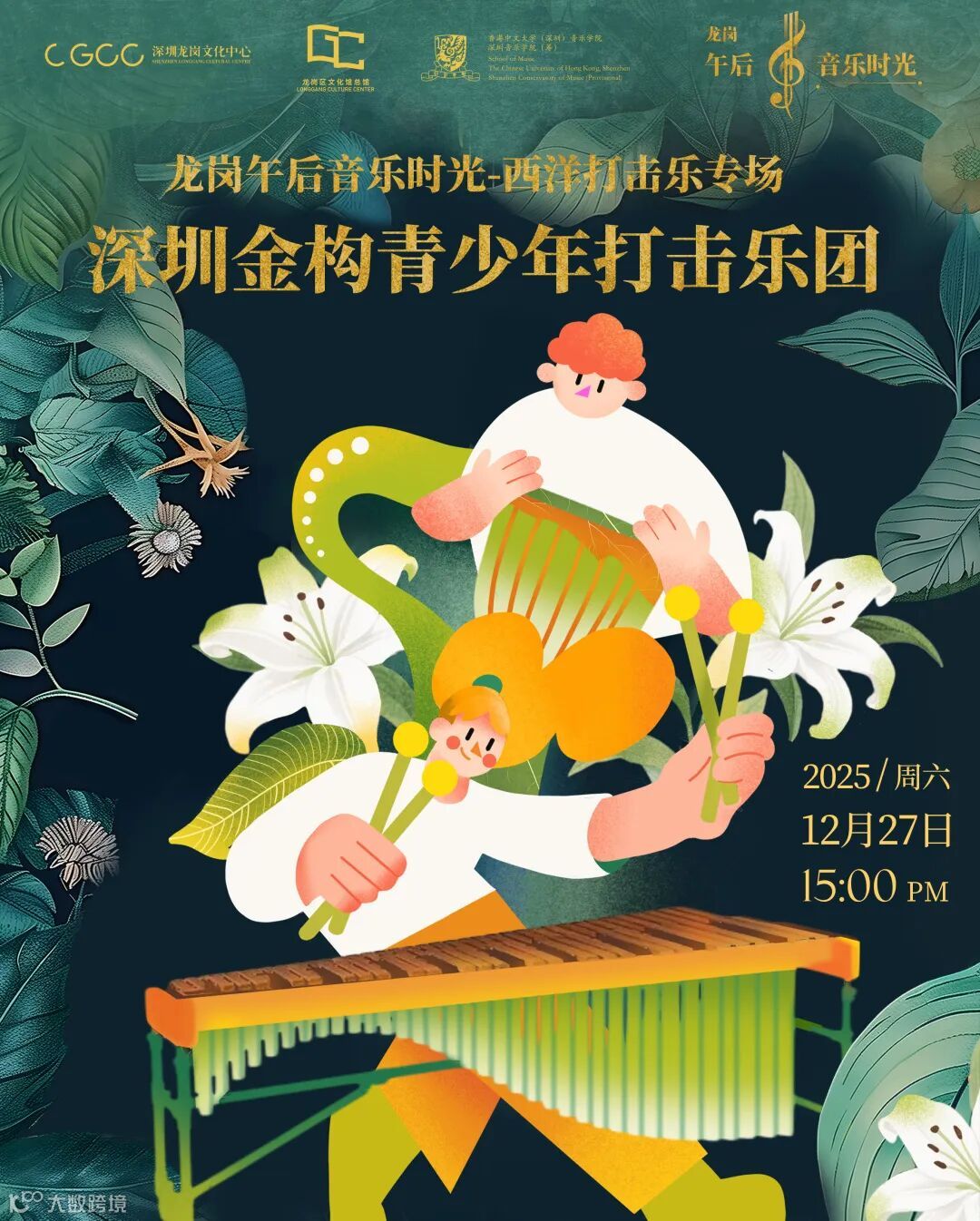 當(dāng)冬日的暖陽(yáng)灑滿龍崗文化中心,一場(chǎng)以 “金構(gòu)萬(wàn)物” 為主題的西洋打擊樂(lè)盛宴圓滿落幕!深圳金構(gòu)青少年打擊樂(lè)團(tuán)用震撼人心的技藝、靈動(dòng)多變的節(jié)奏,為現(xiàn)場(chǎng)觀眾解鎖了打擊樂(lè)的無(wú)限可能,共度了一段難忘的 “午后音樂(lè)時(shí)光”。