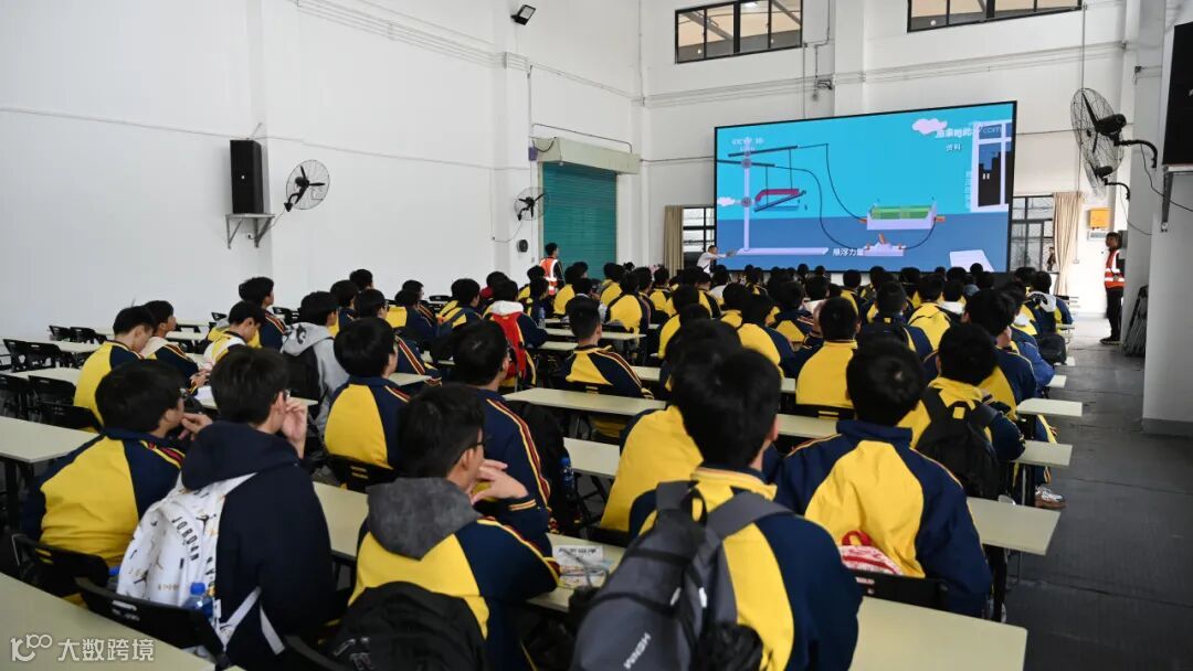 在磁浮播放廳里,當(dāng)《未來理想交通工具——高速磁浮》的影像播放結(jié)束后,主持人拋出問題,同學(xué)們紛紛展開想象,提出了云端軌道網(wǎng)、“磁浮+光伏”能源循環(huán)系統(tǒng)、跨海磁浮通道等充滿創(chuàng)意的未來城市交通設(shè)想。