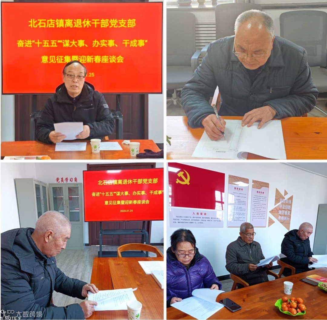 歲末迎新際,謀篇布局時(shí)。為進(jìn)一步落實(shí)市委市政府關(guān)于在全市開展奮進(jìn)“十五五”“謀大事、辦實(shí)事、干成事”群眾意見征集活動(dòng),充分發(fā)揮離退休干部政治優(yōu)勢、經(jīng)驗(yàn)優(yōu)勢與威望優(yōu)勢,推動(dòng)全鎮(zhèn)“十五五”開篇更貼合民生需求、更具實(shí)踐溫度,近日,北石店鎮(zhèn)離退休干部黨支部隆重召開奮進(jìn)“十五五”“謀大事、辦實(shí)事、干成事”群眾意見征集暨迎新春座談會(huì)。
