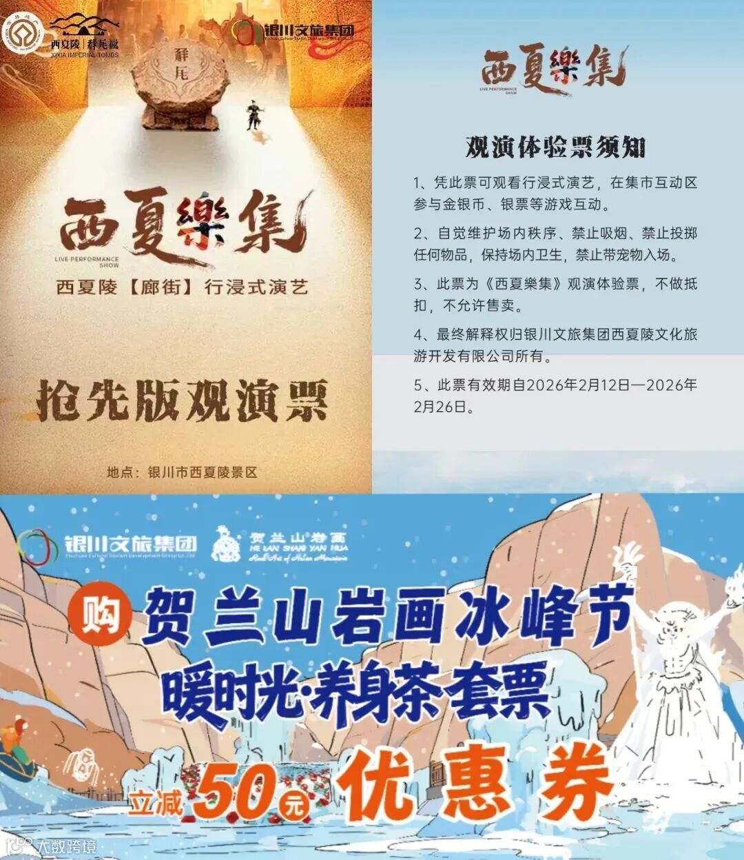 西夏陵西夏樂集體驗券+賀蘭山巖畫冰峰節(jié)優(yōu)惠券