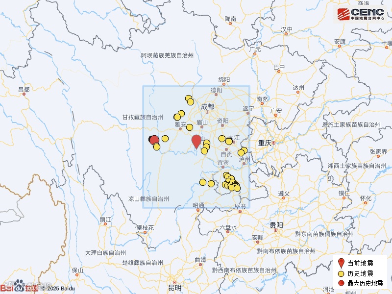 歷史地震:根據(jù)中國地震臺網(wǎng)速報目錄,震中周邊200公里內(nèi)近5年來發(fā)生3級以上地震共244次,最大地震是2022年9月5日在四川甘孜州瀘定縣發(fā)生的6.8級地震(距離本次震中153公里),按震級大小前50次歷史地震分布如圖。