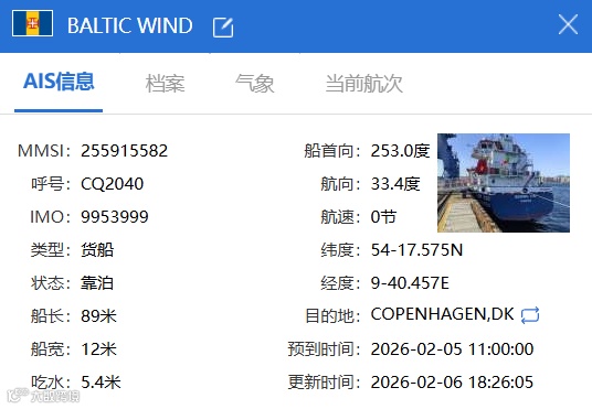 “Baltic Wind”號(hào)建于2023年,船長(zhǎng)88.6米,寬12米。