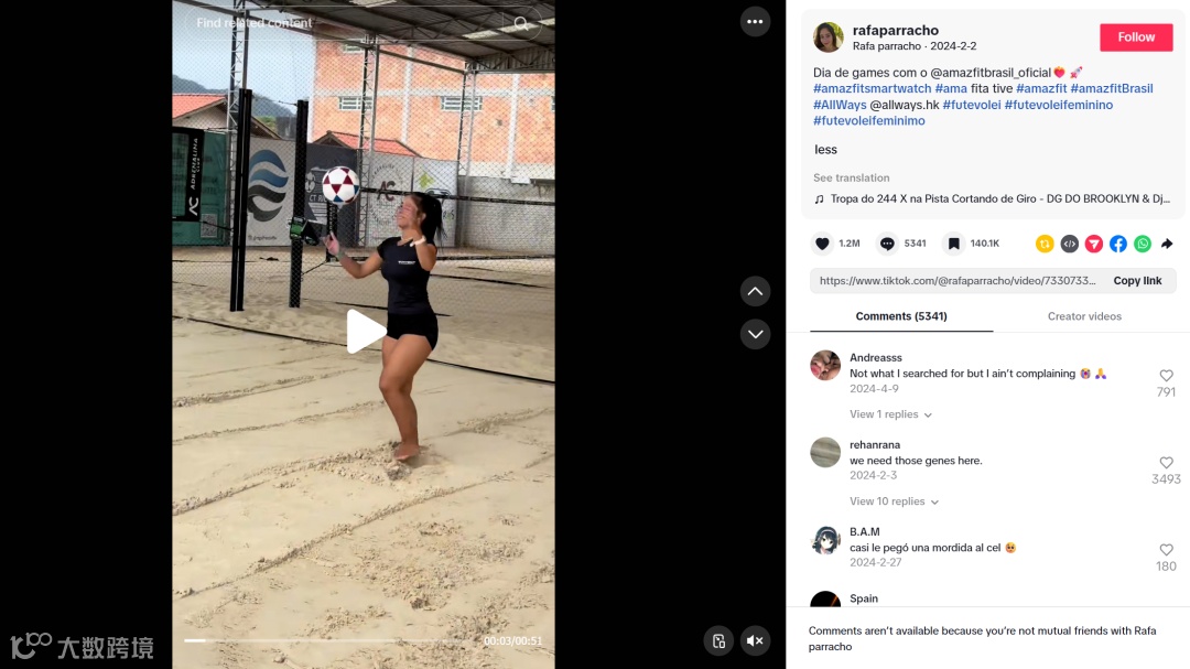 一方面,攜手擁有140萬粉絲的頭部運(yùn)動(dòng)達(dá)人@rafaparracho,用排球訓(xùn)練日常等生活化內(nèi)容,實(shí)現(xiàn)千萬級(jí)線上曝光,讓Amazfit的名字快速走進(jìn)更多東南亞線上用戶視野。