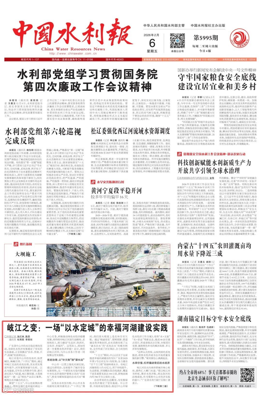 《中國水利報(bào)》頭版報(bào)道廣東:岐江之變,一場(chǎng)“以水定城”的幸福河湖建設(shè)實(shí)踐