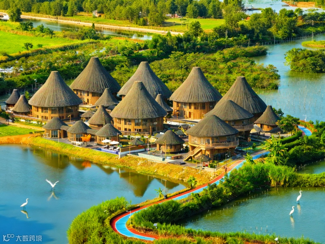 位于汕尾市大液河碧道旁的白鷺集度假村,野奢風(fēng)格的建筑與濕地渾然一體。