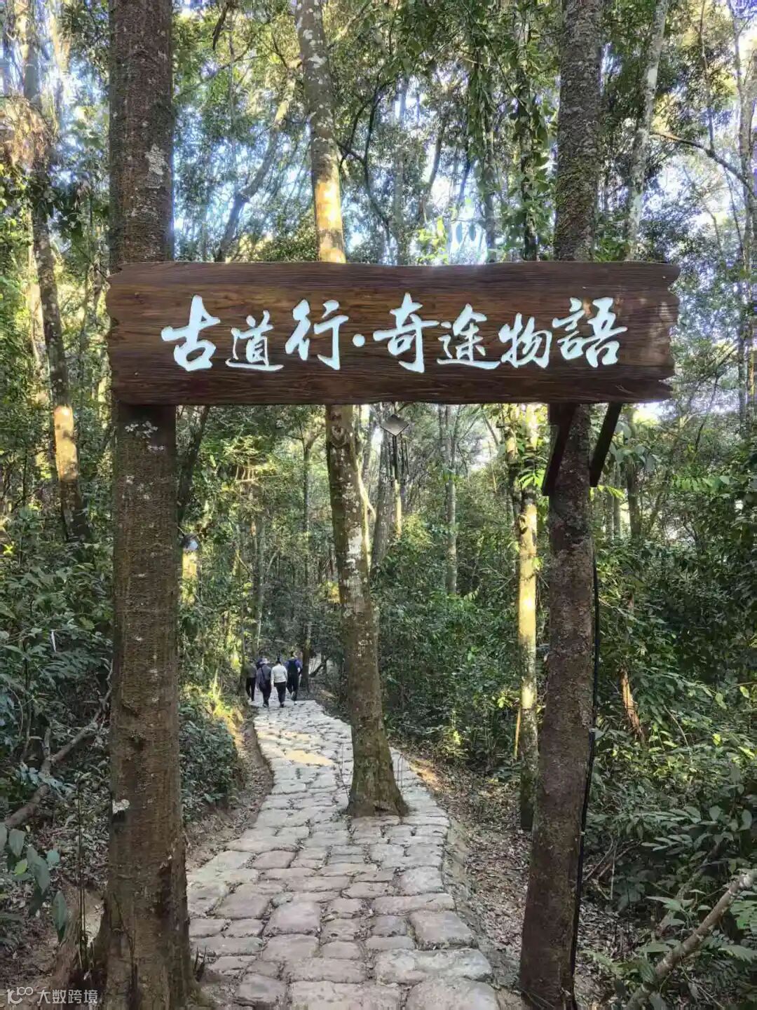 站在茶馬古道的“古道行·奇途物語”木牌下,千年石階被歲月打磨得溫潤光滑。陽光穿過參天古木的縫隙,在林間投下斑駁光影,這里森林覆蓋率超74%,每立方厘米空氣里的負氧離子含量動輒過萬,是名副其實的“天然氧吧”。