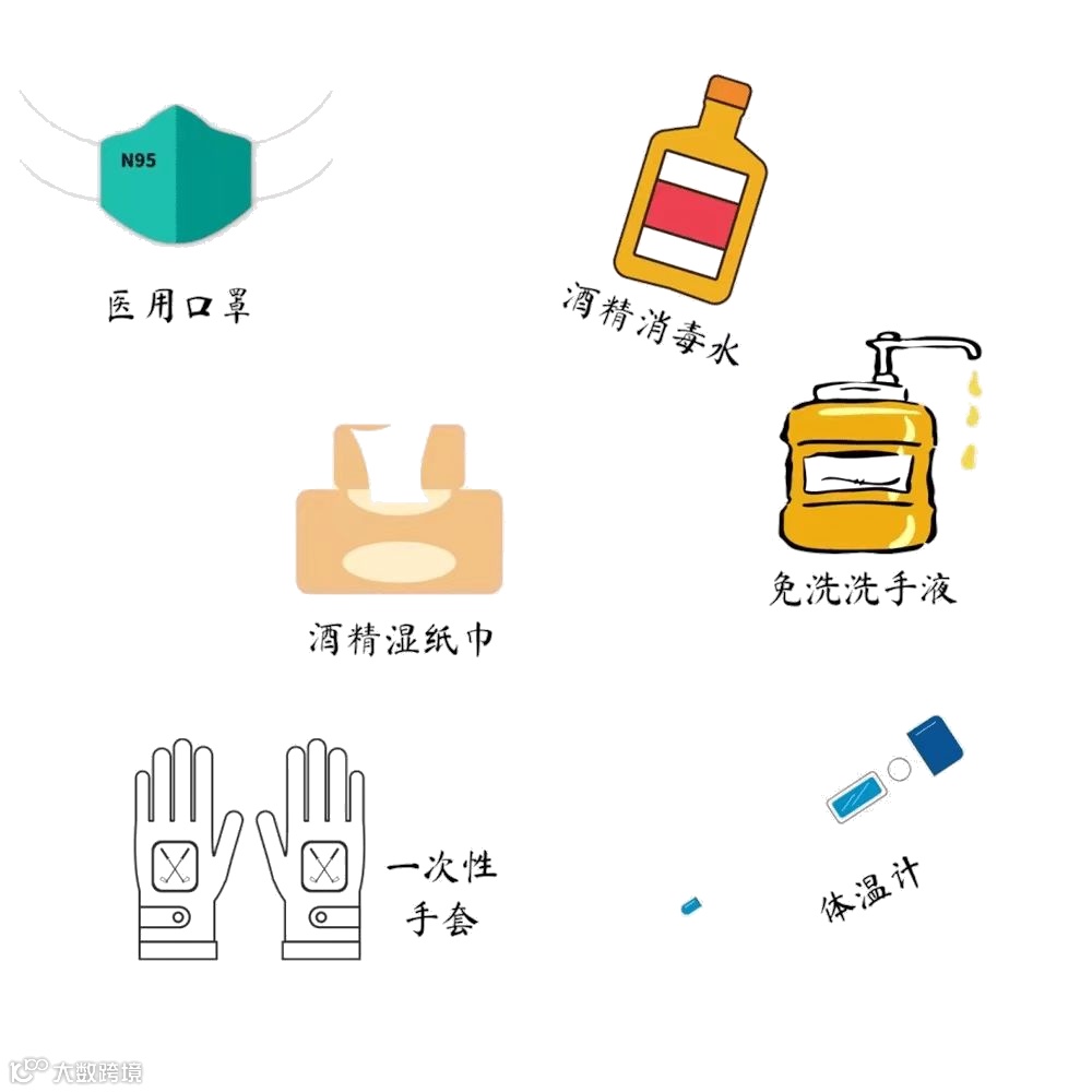 隨身攜帶足量的個(gè)人防護(hù)用品,如外科口罩,便攜免洗手消毒液、消毒濕巾等。必要時(shí)可準(zhǔn)備一些常用藥品,如解熱鎮(zhèn)痛藥、感冒藥、創(chuàng)可貼以及個(gè)人日常必備藥物。