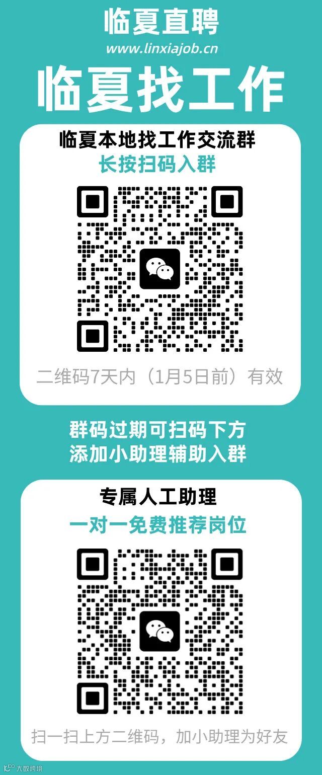 更多招聘信息,掃碼進【臨夏直聘工作推薦群】