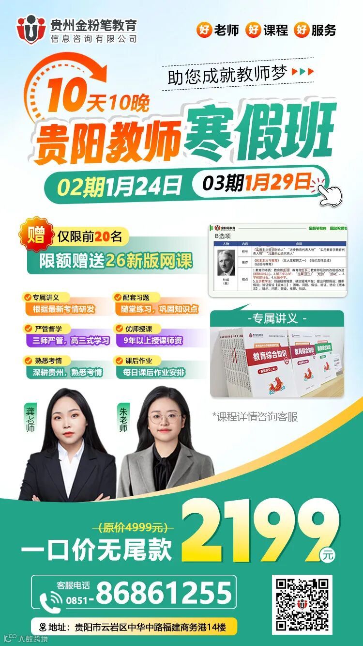 26年貴州教師筆試寒假班正在火熱預(yù)約中!第二期1月24日開課