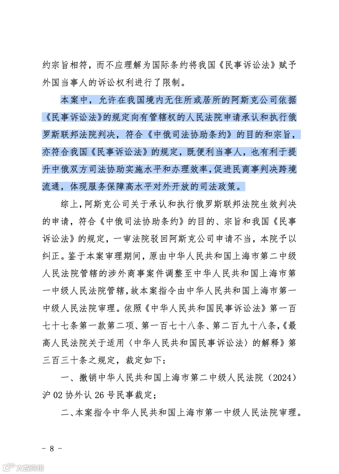 2025年12月23日,上海市高級(jí)人民法院就一起涉及承認(rèn)與執(zhí)行俄羅斯聯(lián)邦新西伯利亞仲裁法院裁決的上訴案件作出裁定。