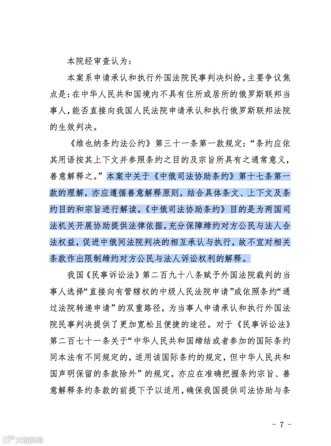 本案核心爭(zhēng)議在于如何適用《中華人民共和國和俄羅斯聯(lián)邦關(guān)于民事和刑事司法協(xié)助的條約》(1992年)的相關(guān)規(guī)定。