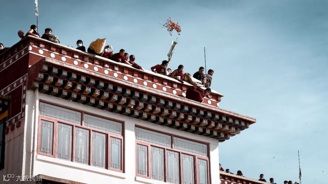 僧人們站在佛殿頂上,暗紅色的僧袍被大風(fēng)扯得獵獵作響。