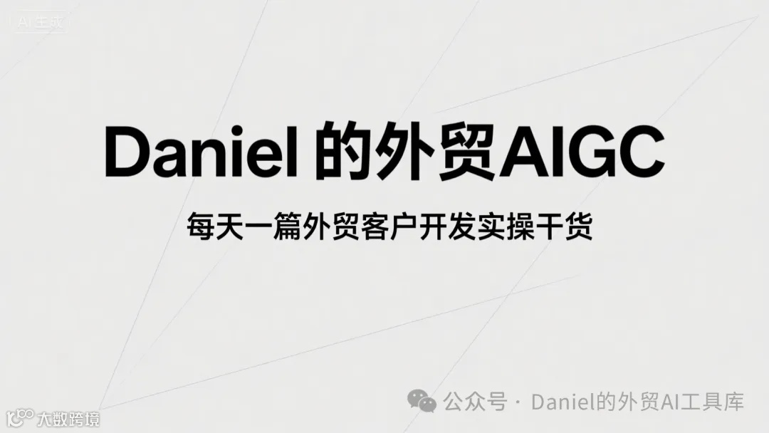 Daniel的外貿(mào)AIGC————外貿(mào)人的客戶開發(fā)工具箱,每天一篇實(shí)操干貨。點(diǎn)擊標(biāo)題下藍(lán)字“Daniel的外貿(mào)AIGC”關(guān)注,我們將帶你掌握:找客戶、分析客戶、寫開發(fā)信的高效方法。
