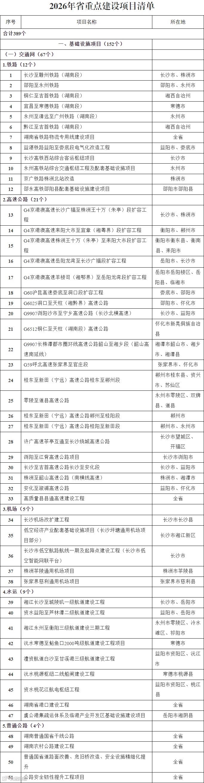 涉6條高鐵、17條高速公路,湖南公布389個(gè)重點(diǎn)建設(shè)項(xiàng)目名單! 雙峰坤宇信息網(wǎng)