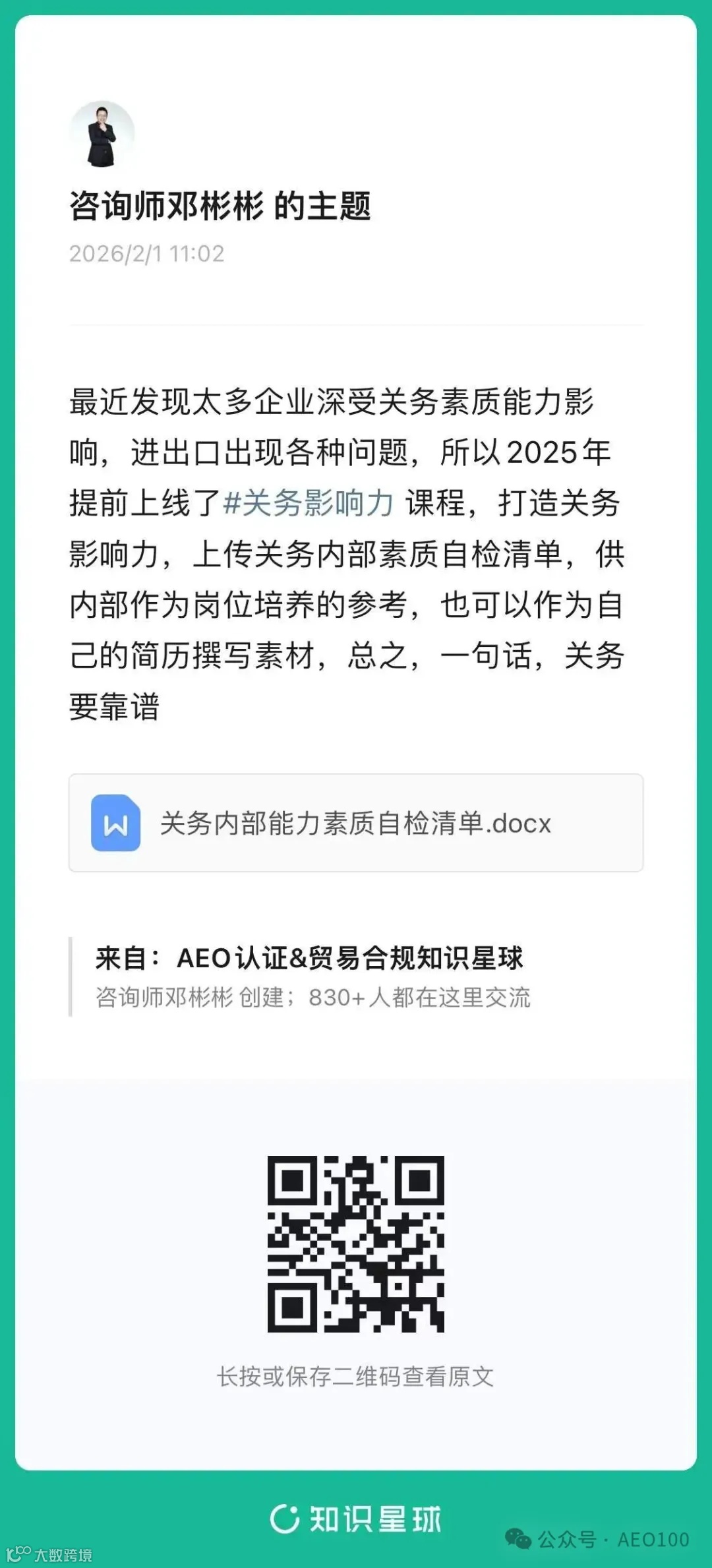 如果有進出口合規(guī)、AEO認證審計困擾或迫切需求小伙伴,一起來討論AEO認證未來之路,一起討論在企業(yè)內(nèi)部落地的方法。
