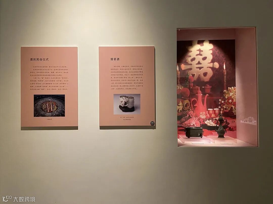“綠蟻新醅酒” 和 “把酒話桑麻” 側(cè)重自然科學(xué)角度,展示酒的原料、香味、種類與釀造技術(shù)。第三部分 “能飲一杯無” 通過青銅禮器、古籍書畫等引領(lǐng)觀眾回顧酒禮與酒俗。最后 “霞影入瑤觴” 則展示中國傳統(tǒng)酒具與外銷酒具中的中西文化交融與匠心傳承.