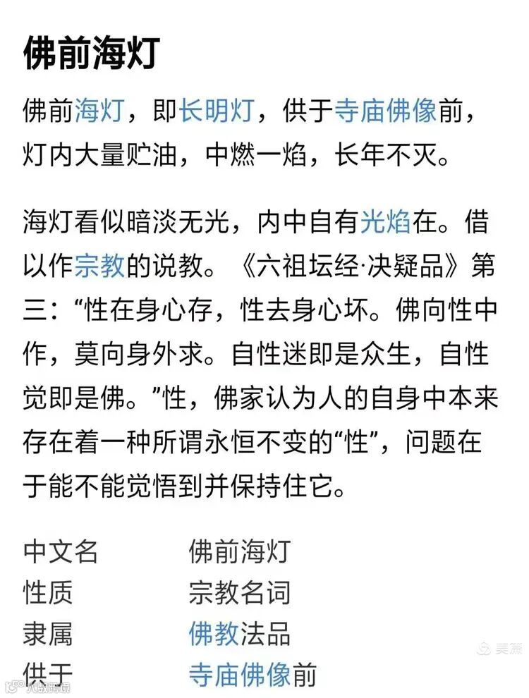 今天,看到了關(guān)于“佛前海燈”的文字,確定了我的猜測。