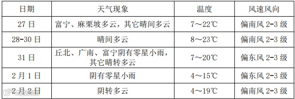 1.重點(diǎn)關(guān)注1月31-2月1日降溫天氣,需加強(qiáng)防范低溫天氣對(duì)能源保供、農(nóng)業(yè)生產(chǎn)、人體健康等方面的不利影響,做好城鄉(xiāng)用電用火安全。