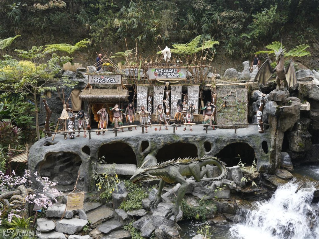 離開(kāi)非遺街,在古龍峽瀑布平臺(tái),“野人們”正模仿遠(yuǎn)古部落生活,讓觀眾仿佛穿越時(shí)空,回到了原始叢林。還有不少刺激好玩的游玩項(xiàng)目,比如由德國(guó)公司設(shè)計(jì)建造的懸崖飛車,讓觀眾在追風(fēng)逐電中盡享速度與激情;峽道QQ飛車作為官方授權(quán)賽道,其蜿蜒曲折的賽道設(shè)計(jì),讓觀眾在山水間體驗(yàn)到了“人車合一”的快感。