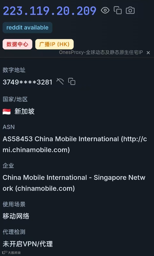 近日有用戶發(fā)現(xiàn)一款基于CMlink網(wǎng)絡(luò)的eSim服務(wù),其IP地址顯示為香港廣播至新加坡,具備良好的網(wǎng)絡(luò)穩(wěn)定性。