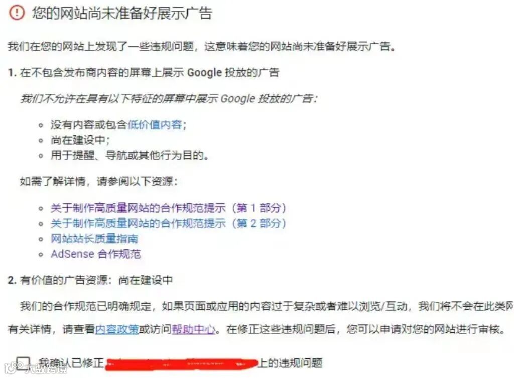 在提交AdSense審核前,若系統(tǒng)提示網(wǎng)站未準(zhǔn)備好,可能由以下原因?qū)е拢?/p>