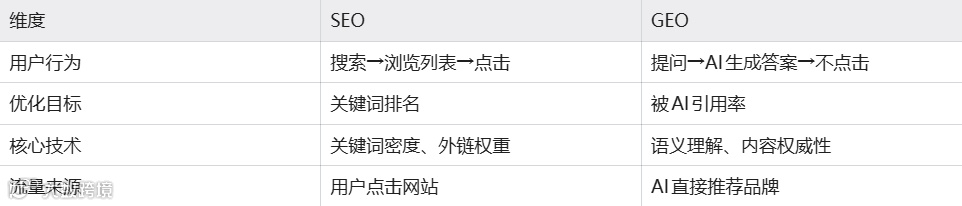 SEO和GEO的核心差異,一張表說(shuō)清楚