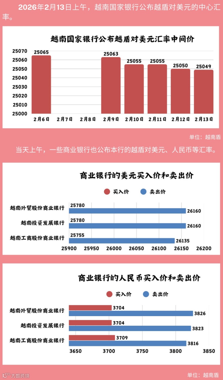 2月13日:越南市場(chǎng)美元和人民幣價(jià)格[附參考匯率]